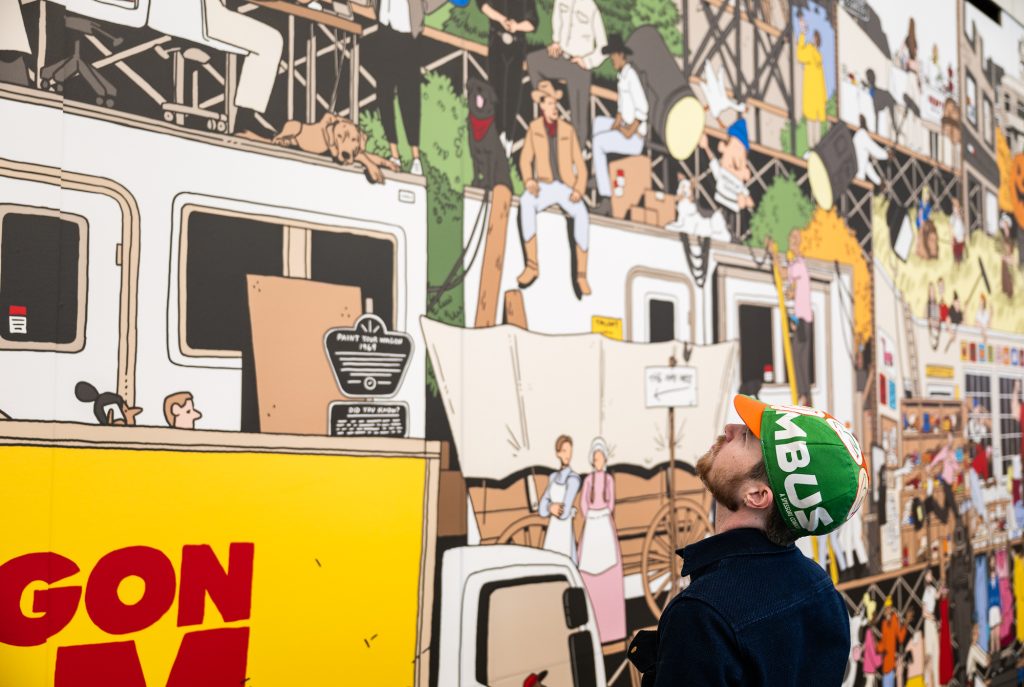 A new mural commissioned by Oregon Film and created by artist and graphic designer Nick Stokes is now on view in Concourse B, honoring more than a century of filmmaking in Oregon. Digitally created and designed by Nick Stokes and printed as a large-scale mural, the work salutes the state’s film history, the crews and creatives who power production, and the Oregon locations that bring stories to life.